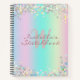 Sketchbook Unicorn Holographic Glitter Notebook - A trendy sparkling coloured notebook with mixed turquoise, pink and mauve and light yellow glitter. You can personalize this notebook by adding your name and initials.