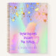 A trendy holographic coloured background with unicorn and rainbow pastel colours in pink, purple, mint green. Decorated with dripping stars and a rainbow coloured unicorn. Personalize and add a name. Text; Draw dreams. Design the future.