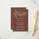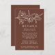 Elegant floral wedding details cards featuring white sketched flowers and leaves near the top of the design with a brown background. Personalize the botanical wedding details cards with your wedding details below in classic white lettering. Designed to coordinate with our Sketched Floral wedding collection.