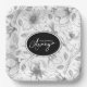 A beautiful pattern of hand drawn flower outlines in shades of gray is used to create the pieces of this modern collection. The striking paper plate for any occasion is shown here featuring elegant handwritten script text and a template to add your name and/or other message on a black background. Search ID939 to see all the products in this design set.