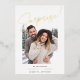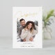 Haven't set the date yet, but can't wait to share the good news with family and friends? Announce your engagement with these simple and lighthearted photo cards, featuring a vertical or portrait-oriented photo with "surprise!" overlaid at the top in hand sketched gold foil lettering. Personalize with three lines of custom text along the bottom, including your announcement, names in gold foil, and a note to stay tuned for further details.