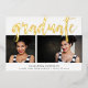A modern graduation announcement featuring two of your favourite senior portraits or graduation photos aligned side by side, with "graduate" overlaid in gold foil hand sketched lettering. Personalize the front side with the graduate's name, school and class year, and add a personal message to the back.