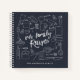 Personalized our family recipe book featuring white sketched kitchen essentials set on a navy blue background and customized with your name on the cover. Visit our shop to view our large selection of unique recipe notebooks.
