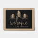 Perfect for the holidays, winter time, or your woodland home or cabin, this cute forest themed doormat features "welcome" in handwritten calligraphy script, with a trio of hand sketched pine tree illustrations. Personalize with your family name.