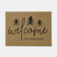 Perfect for the holidays, winter time, or your woodland home or cabin, this cute forest themed doormat features "welcome" in handwritten calligraphy script, with a trio of hand sketched pine tree illustrations on a classic tan background. Personalize with your family name.