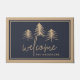 Perfect for the holidays, winter time, or your woodland home or cabin, this cute forest themed doormat features "welcome" in handwritten calligraphy script, with a trio of hand sketched pine tree illustrations. Personalize with your family name.