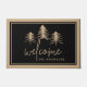 Perfect for the holidays, winter time, or your woodland home or cabin, this cute forest themed doormat features "welcome" in handwritten calligraphy script, with a trio of hand sketched pine tree illustrations. Personalize with your family name.