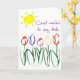 A sketched little garden of tulips with a bright yellow sun, just to say "Hello"