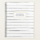 A planner featuring a sketchbook inspired black and white thin stripes design on front and back.