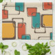 A stylish 1950's atomic era abstract art pattern with dark brown skewed squares in turquoise, burnt orange and gold.
