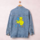 Une poussette jaune tenant des skis et entourée de flocons de neige est un design amusant pour les amis skieurs et la famille.