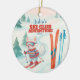 Celebrate your little skier's first Christmas with this charming Ski Club Adventure Ceramic Ornament! This beautiful, high-quality ceramic circle ornament features the whimsical baby Arctic Fox skiing down a Nordic slope from the collection. Personalized with your child's name and the year, it becomes a timeless, gender-neutral keepsake to hang on your family tree for years to come.