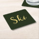 SKI Fun Modern Script Elegant Dark Forest Green Square Paper Coaster