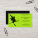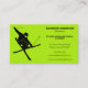 Promote your ski lessons business or other services for skiers with these eye-catching business cards in lime green and black. They feature a silhouette style illustration of a skier doing a ski trick and are easy to personalize with your business information and contact details.