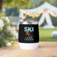 Graphique de ski qui dit : Ski Lake Tahoe. Conception amusante de ski pour les prochaines vacances de ski en montagne en hiver.