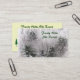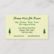 This business card advertises a ski resort. The lovely image on the front represents the essence of winter. Evergreen trees stand out against the bare branches of deciduous trees on a frosty hillside. Every branch and needle is covered with snow, ice and frost. The full effect is a painterly impressionistic composition of the season. The back has all your pertinent information ready to be customized to fit your personal situation.