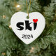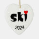 Ski text with a heart dotting the i in the word ski is a fun gift design for skiers, ski instructors and lovers of winter sports at birthdays and holidays with customizable date.