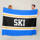 SKI Wide Bright Blue Black Yellow Racing Stripes Fleece Blanket