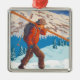 Skier Carrying Snow Skis - Montana Metal Ornament