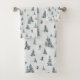 Cette serviette de bain propose des skieurs de descente naviguant à travers des pistes bordées d'arbres, avec des yétis insaisissables se cachant et fléchissant à travers la scène.