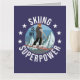 Funny winter ski sports illustration, showing mountain graphics and a woman on skis, and the saying: skiing is my superpower and little stars. This is the perfect gift for everyone, who loves skiing, mountains, and winter sports.