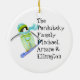 This whimsical Penguins at Play character is hand water coloured by Audrey Jeanne Roberts and can be personalized for the perfect Family Christmas Ornament, especially for a winter sports or a skiing or snowboarding family! Sure to be treasured for a lifetime. The front has a delightful penguin on skis with a penguin cheering him/her on and your family name and Christmas year. On the reverse side, a snowboarding penguin and your family names. It features a hand painted swirl and snow background. You can easily place your own text where the sample text is now. YOU MIGHT ALSO ENJOY: