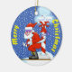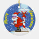 A skiing Santa in sunglasses up at the North Pole makes up this fun Christmas ornament. Customizable so you can add your own text and change the background colour. Bring in the holidays with this festive design.