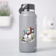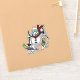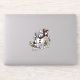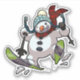 An ice cool contour sticker featuring a cartoon of an over excited snowman with a carrot nose and coal eyes, dashing through the snow on skis, in woolly winter hat and tartan scarf. An upbeat image for Xmas or throughout the winter.