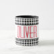 A classic black and white buffalo check pattern, handle and inside is black with modern skinny font name in red. Easily change name, add text or remove to make it yours using the Template provided This is an 11oz. combo colour beverage mug, also available in 15oz. size. Choose from 9 colours for handle and inside, or 5 colours for 15oz. See "About This Product" at side for additional information.