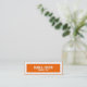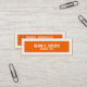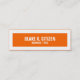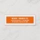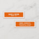 Custom, bold narrow business card. Slender, minimal design of white bold text on tangerine orange background with large white border. Simple, yet bold, skinny mini business card.