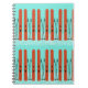 Skis rouges sur neige avec arrière - plan bleu sur carnet en spirale.