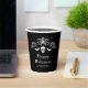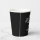 Serve drinks in spooky style with these black and white Halloween paper cups. Featuring a bold skull silhouette, flying bats and a decorative flourish with personalizable text areas. Perfect for creating a festive table setting for Halloween parties.