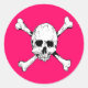 This Skull and Cross Bones design is awesome. The skull is missing its lower jaw. It has sharp teeth and two bones making a "X" behind the skull. It's in white with a black outline.