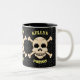 A skull & crossbones make up this fun mug. Customizable so you can add your own text and change the background colour. Makes a great gift!
