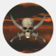 Skull and Crossed Swords w/Red Sky Background 1 Classic Round Sticker