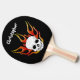 This skull design ping pong bat, or table tennis racket, can be customised with any text. The paddle is laminated wooden with a choice of a EVA on one side for graphic printing and a 2 ply "pips in" rubber face on the other or EVA on both sides for graphic images. Players select bats based on their playing style, considering the blade's materials for speed and power, the sponge's thickness for control, and the rubber's tackiness for spin. Should you require any help with customising then contact us through the message link on this page. Skull design table tennis bat.
