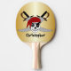 This skull design ping pong bat, or table tennis racket, can be customised with any text. The paddle is laminated wooden with a choice of a EVA on one side for graphic printing and a 2 ply "pips in" rubber face on the other or EVA on both sides for graphic images. Players select bats based on their playing style, considering the blade's materials for speed and power, the sponge's thickness for control, and the rubber's tackiness for spin. Should you require any help with customising then contact us through the message link on this page. Skull design table tennis bat.