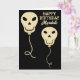 This spooky birthday card features my illustrations of some skull shaped balloons. The ivory coloured graphics are set against a black background. The front of the card is ready to be personalized with your recipient's name, while you can create your own customized message on the inside of this card.