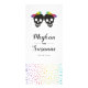 Two skull brides with bows in rainbow colours Halloween lesbian wedding menu card. This wedding design features the skulls of two brides with bows in rainbow colours on the upper part and colourful confetti at the bottom..