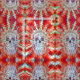 Surreal skull head. Colourful gothic, trendy, cool, modern, red repeating pattern sewing material. Psychedelic trippy abstract pop art culture crafting material. Image copyright Marg Seregelyi Photography.