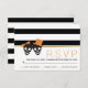 Skull couple and stripes Halloween wedding RSVP