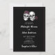 Darkly beautiful wedding invitation with a skeleton skull couple with roses and a black background and burgandy border. The back of the invitation has smaller skulls. Perfect for a gothic or Halloween wedding. See coordinating items in our shop, Enchanted Finch