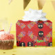 Fun Horror series Fun birthday wrapping paper - featuring a spooky skull and crossed bones with glowing red eyes - perfect for a Halloween birthday. On a background of party confetti there are zany dancers, too, all adding to the fun of a birthday celebration.