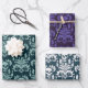 Skull Flame Damask blue and purple collection Wrapping Paper Sheet