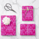Skull Flame Damask in bubblegum pink on hot pink Wrapping Paper Sheet