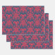 Skull Flame Damask in clashing red on blue Wrapping Paper Sheet