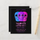 This funny skull head Halloween Birthday Party budget flat card invitation for girls features a Gothic blue pink purple black creative design. Three skulls with googly eyes, trendy, cool, unique, scary, spooky, modern vintage inspired. Image copyright Marg Seregelyi Photography.