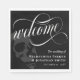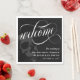 Elegant dark Halloween or goth wedding welcome napkins with welcome written in a swirly white calligraphy script. Add your names and wedding date against a black background with a grey skull. Add a touch of dark romance to your goth wedding with these elegant luncheon napkins! These black, white, and grey napkins feature a swirly calligraphy script and a skull, perfect for your unique and stylish goth wedding. Your guests will love the sophisticated yet on theme design of these napkins.