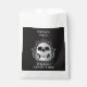 A skull and ornate border on a black background, and your details in chic white lettering, these Halloween party themed party favour bags or trick or treat bags are fun for your Halloween costume party or give out to trick or treaters. MATCHING items in our store.