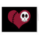 This skull heart design features a cartoon skull with hearts in its eyes on a reddish pink stitched up heart!